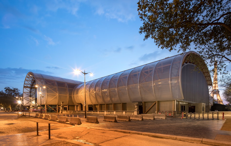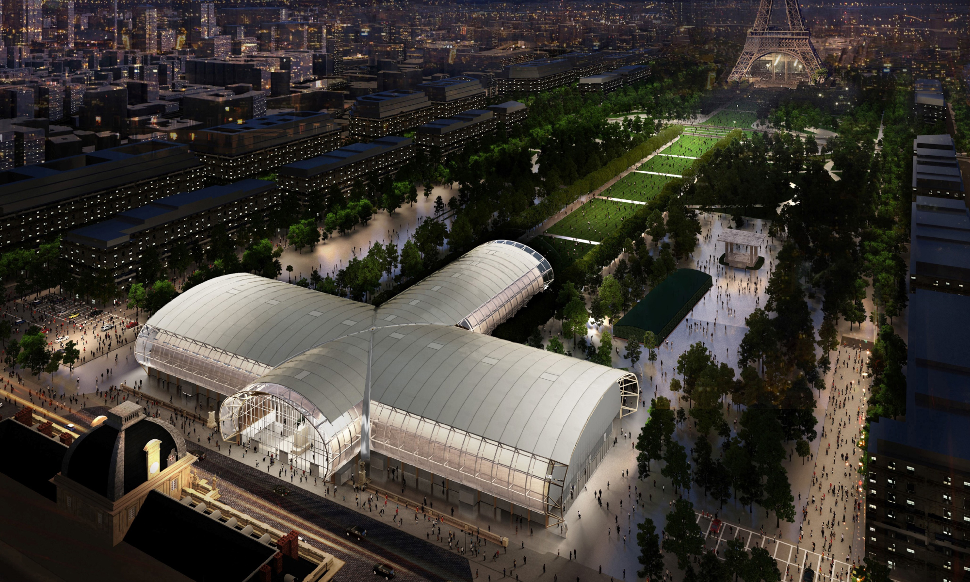Esta icónica estructura modular y temporal de 10 000 m² acogerá los eventos del Grand Palais mientras duren las obras, como también las pruebas olímpicas de judo y lucha, y las paralímpicas de rugby sillón y de para judo en los Juegos Olímpicos de París 2024.