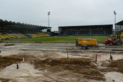 terrassement, VRD, gros œuvre, tribunes, charpente métallique, couverture, locaux modulaires, CFO/CFA, CVC, ascenseur, menuiserie, plomberie, sanitaires…
